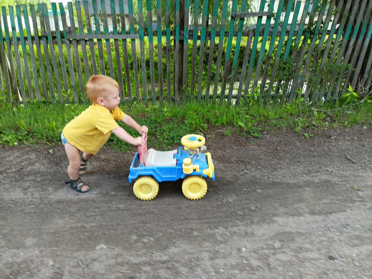 Удачно складывается лето, как-то очень синхронно с моими потребностями в контексте Лёни. Скажем, сначала, когда Лёня не умел ходить, погода стояла теплая, Лёня был одет легко и бегал вокруг дома на четвереньках, в шортиках, не пачкая и не протирая штаны. Когда Лёня пошел - погода установилась умеренная, ни холодно ни жарко, самое хорошее, чтоб подолгу тусить у дома и учиться ходить.