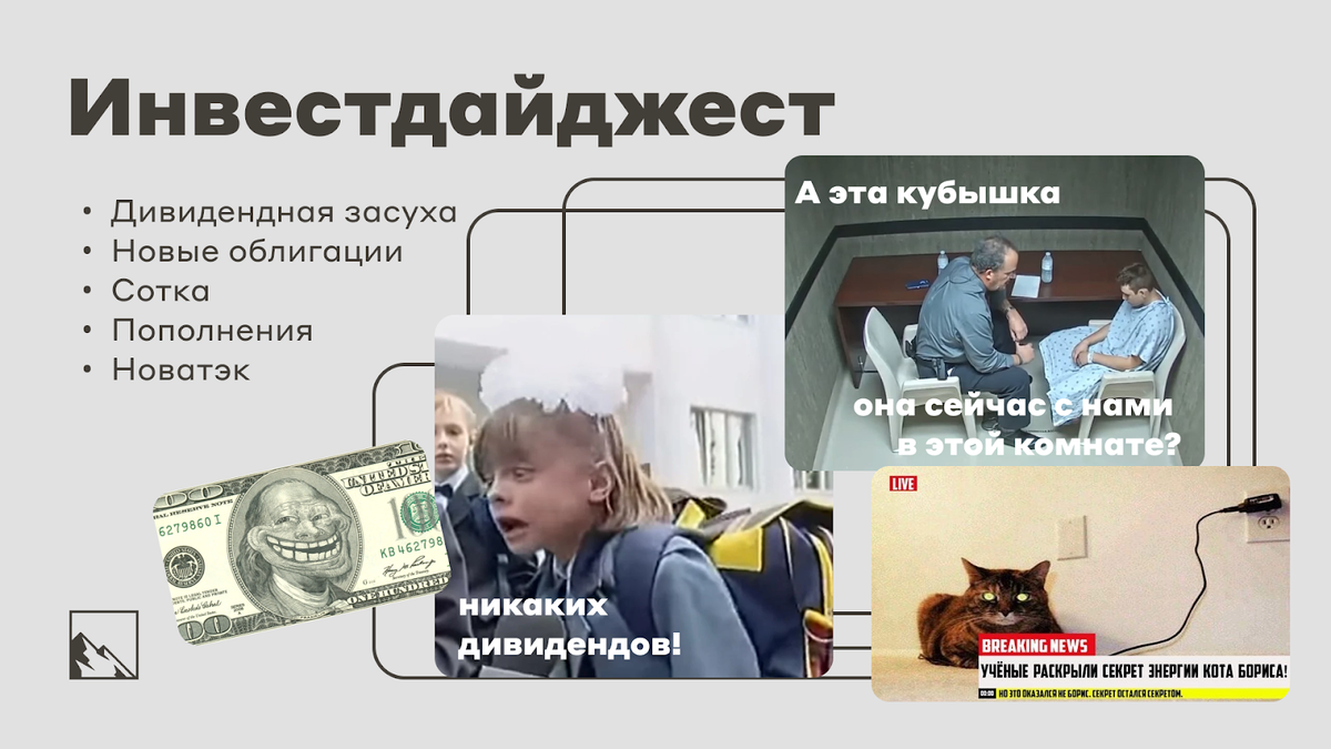 Наступила дивидендная засуха, зато выпуски облигаций льются как из рога изобилия. Доллар штурмует психологический рубеж в 100 рублей за штуку, а я пополнил портфель новыми бумагами и рассказал в традиционном инвестдайджесте о самом важном, что, на мой взгляд, произошло за неделю. Новые облигации Во-первых, разместился выпуск ФЭС-Агро. Как я и думал, произошёл овербукинг, так что заявка, выставленная с запасом, отработала правильно. Моментальный апсайд снова напомнил о том, что инвесторы готовы брать вообще всё, что даёт больше 13%. Новые Технологии в итоге я решил скипануть, лучше поучаствовать в размещении Селектела, а то у меня в портфеле пошёл перекос на ВДО. С ВСК как-то пока не срослось. Заявка не сработала пока что, подожду. Но я не сильно был на НТ и ВСК нацелен из-за того, что нужно было ставить заявочку на РД. На очереди Селектел, про который я уже писал, а также интересно посмотреть на новые выпуски ФПК Гарант-Инвест и Интерлизинг. Зачастили эти ребята) Святой рандом — Новатэ