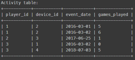 Задача: Напишите SQL-запрос, чтобы сообщить о доле игроков, которые вошли в систему снова на следующий день после дня, когда они впервые вошли в систему, округленную до 2 знаков после запятой. Другими словами, вам нужно подсчитать количество игроков, которые входили в систему как минимум два дня подряд, начиная с даты их первого входа в систему, затем разделить это число на общее количество игроков. Дано: Решение: SELECT ROUND(SUM(login)/COUNT(DISTINCT player_id), 2) AS fraction FROM (SELECT player_id, DATEDIFF(event_date, MIN(event_date) OVER(PARTITION BY player_id)) = 1 AS login FROM Activity) AS t Результат: Источник: https://leetcode.com/problems/game-play-analysis-iv/description/