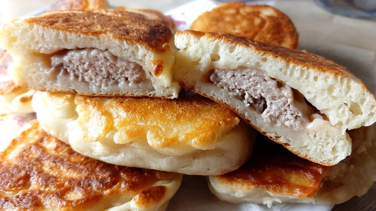 Ленивые Беляши без вымешивания теста или дрожжевые Оладьи с Мясом
