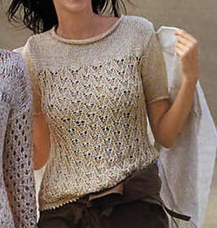 Ажурный джемпер из бежево-белой пряжи (спицами).