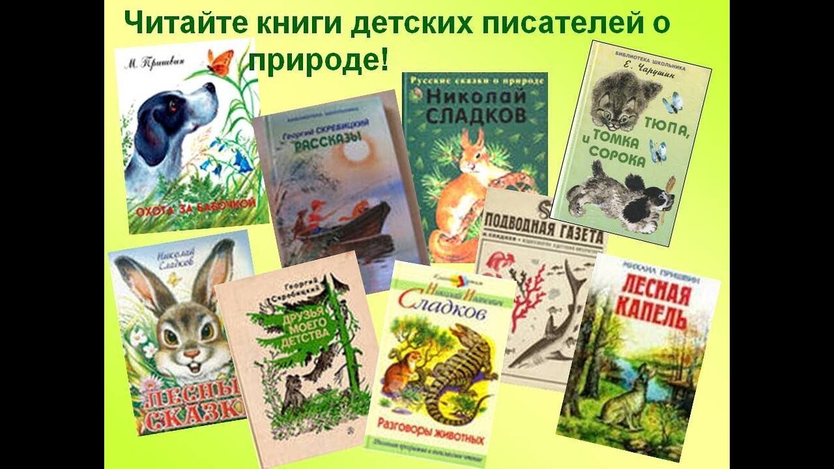 3.Также читателям будут интересны произведения о природе Сладкова Николая Ивановича. С детства у Сладкова проявилась любовь к окружающему миру, природе. Со второго класса он начал вести дневник «тетрадь наблюдений», куда записывал свои впечатления и наблюдения. Книга «Серебряный хвост», «Подводная газета», «Воздушный замок», «Деревья скрепят», являются для детей поучительными, доступными, они передают детям тайны окружающего мира. Чтение рассказов о животных Сладкова воспитывает любовь и ответственность .