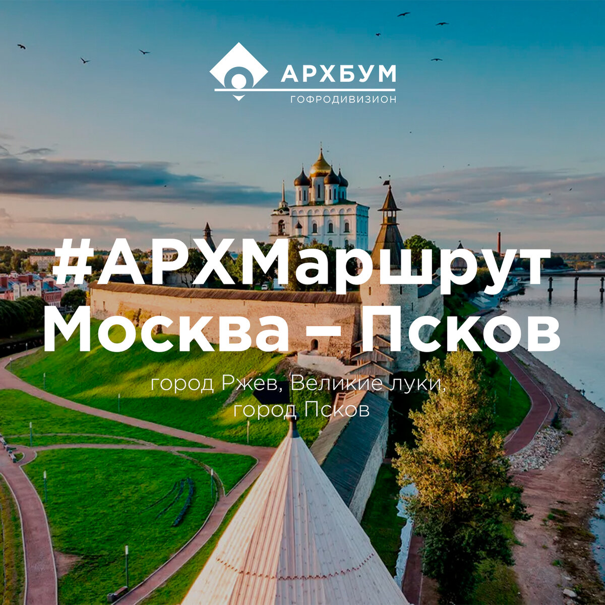 Новый #АРХМаршрут для нас проложила Ангелина Максимова, менеджер по персоналу в филиале Истринского района. Вместе отправимся из Москвы в Псков, посетим различные города и деревни, увидим много исторических памятников и красивых мест. Поехали! Первая остановка по пути к Пскову - Ржев. По трассе М9, это Новорижское шоссе, можно найти много памятников Великой Отечественной войне. Например, знаменитый монумент Советскому солдату, который как будто исчезает со стаей журавлей. У подножья расположена большая парковая зона, музейно-выставочный павильон, панели аллеи с именами и портретами солдат. Следующая остановка - Великие Луки. Маршрут от филиала АРХБУМа в Истринском районе до Великих Лук занимает около 6 часов. Сам город был разрушен еще в годы войны, поэтому его вид представляет собой образец Сталинской архитектуры. Если вы любите классическую музыку, то обязательно посетите музей-усадьбу М.П. Мусоргского. А после загляните на чашечку кофе и горячую выпечку в кофейню "Французская булочк