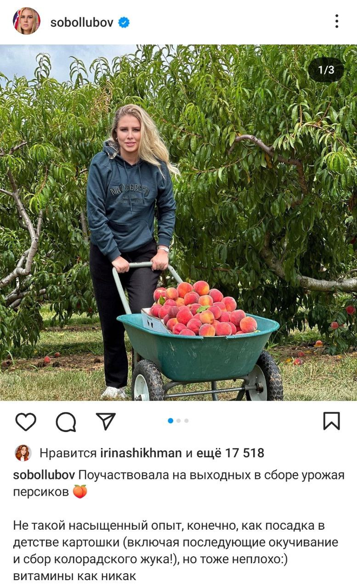 Труд, скажу я вам, и не из таких ... органических соединений делал людей. Так что я надеюсь и уповаю на то, что Люба твердо встала на путь исправления и идет по нему, толкая перед собой тачку. И потом, давайте будем откровенны, особенно в свете намечающихся общемировых тенденций - тачку с персиками толкать значительно приятнее, чем тачку с мерзлой землей. А все ведь идет именно к этому! Да, персики - это не картошка, которую Люба сажала в детстве, а затем окучивала, параллельно вступая в дискуссию с колорадскими жуками. Но физический труд для пользы общества - это всегда хорошо. Потом она начнет собирать макулатуру, затем - металлолом, и вот так, понемногу, мы и обретем полноценного члена общества. Другое дело, что мы потом с этим членом будем делать и насколько он нам нужен, но в любом случае - приятно смотреть на девушку, которая занимается полезным делом, а не орет, как будто она в лесу, пытаясь донести до окружающих свои глубокие мысли. А почему - не общественным? Как раз обществе