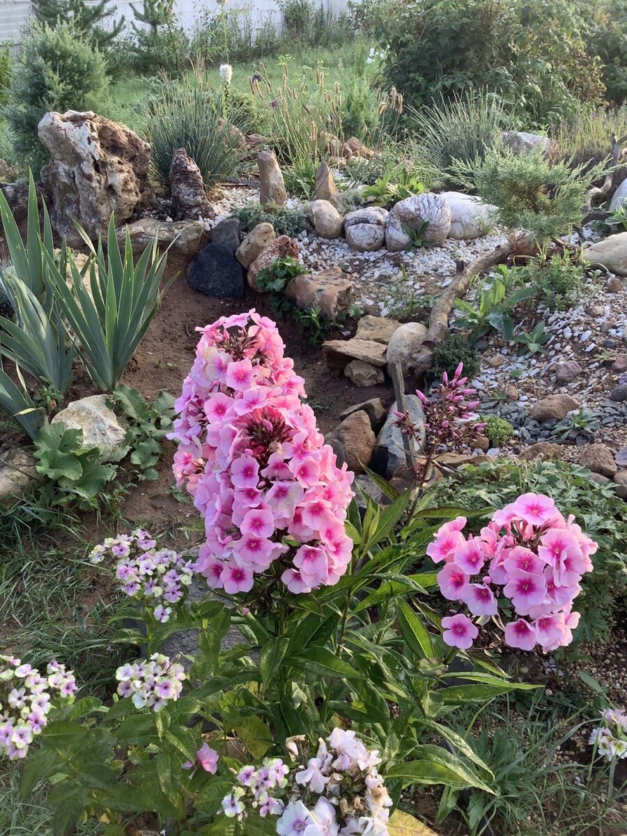 Раз уж я сегодня ною, то пожалуюсь еще, что дзен не очень оценил мою статью с названиями и сортами флоксов с выставки. Так что если кто-то интересовался и пропустил, см предыдущую публикацию. По приезду на участок меня порадовали флоксы у горки. В полном роспуске (звучит слишком гордо для представленного цветения) бабушкин желанный Щербет Бленд выглядит вот так. Цветочки очень мелкие, соцветия скудные, но тем не менее зрелище это немного увлекает.