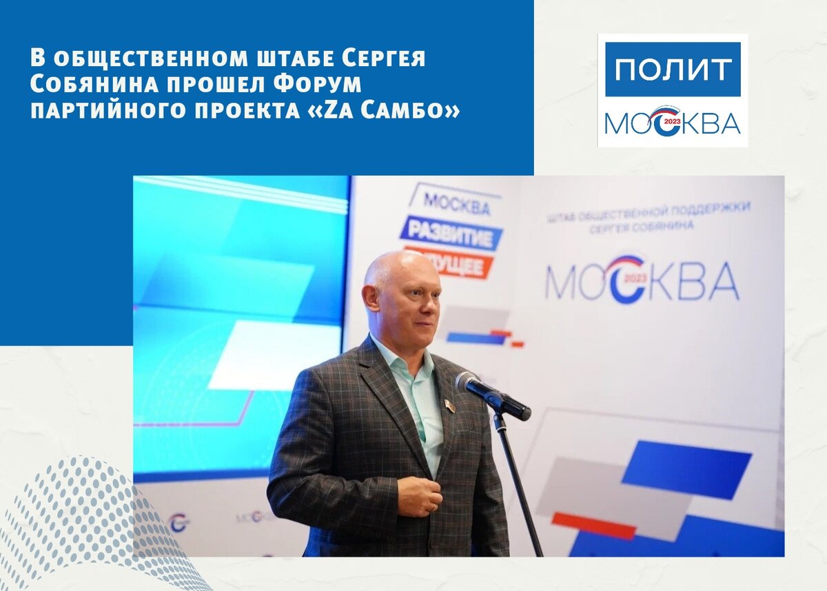 В мероприятии по приглашению руководителя штаба, Петра Толстого, приняли участие президент Федерации Самбо Москвы, глава Центра спорта и образования «Самбо-70» Ренат Лайшев, директор ГБУ «Личность», муниципальный депутат Дмитрий Хлестов, а также представители Москомспорта, Департамента образования и науки и Всероссийской федерации Самбо. Модератором форума выступил депутат Мосгордумы Олег Артемьев – региональный координатор партпроекта. В этом году самбо как вид спорта отмечает юбилей: 85 лет назад, в 1938 году, этот вид единоборств, разработанный российскими тренерами и инструкторами, получил от Спорткомитета СССР официальный статус. Сегодня самбо входит в число наиболее массовых видов спорта в России и служит сохранению здоровья детей и формирования культуры здорового образа жизни. Москва на протяжении многих лет создает благоприятную атмосферу для развития спорта и, в частности, самбо. С ноября 2022 года в районах Москвы организовано более 70 различных мероприятий: турниры, открыт