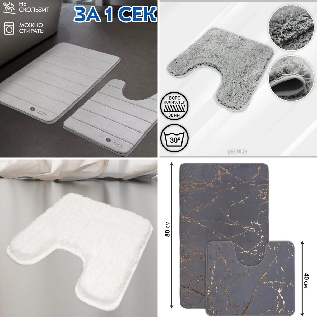 https://www.wildberries.ru/catalog/143608540/detail.aspx?targetUrl=GP&size=242495360Carnero Home Коврик для ванной и туалета https://www.wildberries.ru/catalog/18653410/detail.aspx?targetUrl=GP&size=50411757Bath Plus Коврик для туалета противоскользящий мягкий с ворсом. После стирок сохраняет хороший внешний вид. https://www.wildberries.ru/catalog/48372003/detail.aspx?targetUrl=GP&size=93153726G.Family Коврик для ванной комнаты, для туалета, смотрится хорошо, но после стирок теряет свой внешний вид(