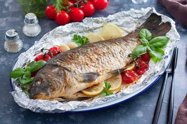 КАРП В ДУХОВКЕ ЗАПЕЧЕННЫЙ ЦЕЛИКОМ В ФОЛЬГЕ