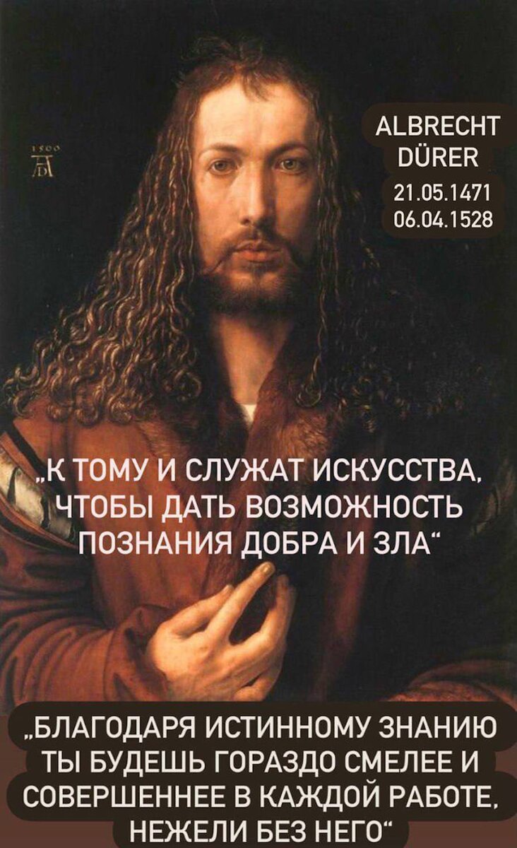 Какое-то время Альбрехт трудился в мастерской отца, но в 1489 году перешел в студию известного художника Михаэля Вольгемута, воспитавшего множество талантливых художников. Именно там Дюрер научился гравированию на дереве. Одни из самых известных картин и гравюр художника: «Меланхолия», «Адам и Ева», «Четыре всадника Апокалипсиса». Альбрехт Дюрер является одним из столпов Северного Возрождения. Оно проявило себя в архитектуре, живописи, литературе, философии и науке, однако, наиб