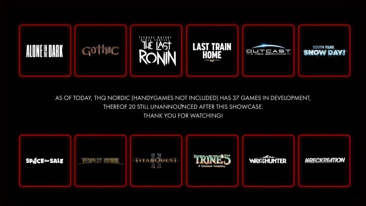 На этой неделе европейский издатель THQ Nordic провел собственное игровое шоу, где были анонсированы такие игры, как Titan Quest II, South Park: Snow Day! и Teenage Mutant Ninja Turtles: The Last Ronin, и представлены новые трейлеры. Однако сюрпризы от этой компании на этом не заканчиваются, и у нее еще имеется несколько "тузов в рукаве". Согласно THQ Nordic, сейчас у нее и студий-партнеров в разработке находится аж 37 игр. При этом более половины (20 штук) еще не были представлены публике. Конечно, компания не стала говорить об этих неанонсированных играх, поэтому они могут быть как маленькими, так и крупными. Но можно с уверенностью сказать, что у издателя еще есть несколько сюрпризов для игроков на будущее.