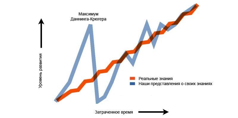 Эффект Даннинга-Крюгера - это когнитивное искажение восприятия своих способностей, при котором люди с низким уровнем компетенции в некоторой области считают себя более компетентными, чем они есть на самом деле. Также данный эффект может проявляться у людей со средним уровнем компетенции, но только в том случае, если они не имеют релевантного опыта в данной области. Это явление было названо в честь Джойс Даннинг и Дэвида Крюгера, которые в 1999 году провели исследование по данной тематике. В ходе исследования было выявлено, что участники с низкими показателями на тестах по логике, грамматике и юриспруденции, были более уверены в своих знаниях, чем участники с более высокими показателями. Предположительно, данное явление обусловлено тремя основными факторами: 1. Недостаточной компетенцией в данной области: Люди с низким уровнем компетенции необходимо иметь систему оценки своих способностей. Они часто не имеют достаточной компетенции, чтобы понимать, как далеко они находятся от опреде