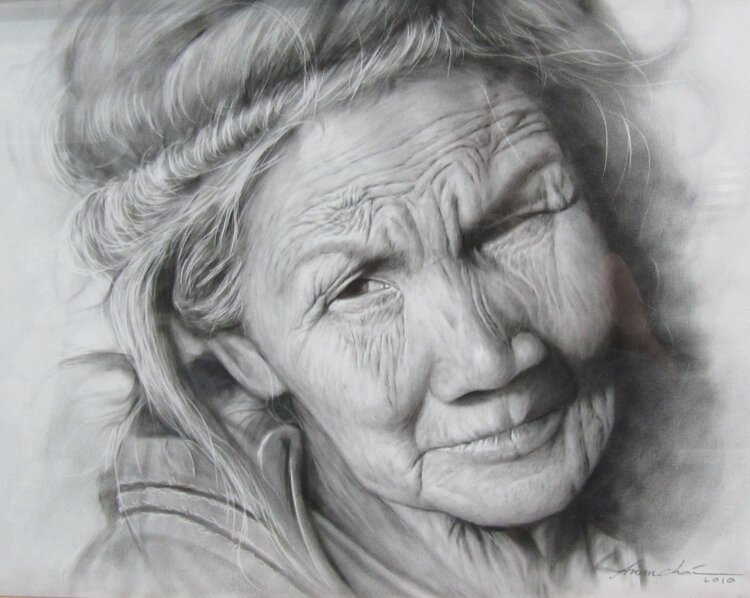 Её редкие седые волосы были в беспорядке, лицо испещрено морщинами, уголки губ скривились в зловещей гримасе, обнажая редкие старческие зубы.