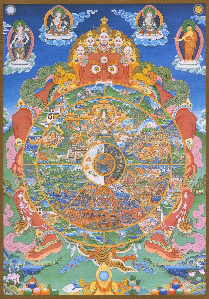 Четвертая позиция — переправа. Прыжок обезьянки, безотносительно к интеллектуальности акта, запускает программу. Это, знаете, как в режиме «нажмите любую клавишу». Ничего непосильного для обезьянки. А переправа пошла. Кто перевозчик? Харон. Известный персонаж арийской традиции. Но вроде он перевозит души туда? А вы посмотрите еще раз на Колесо. Нужно ли перевозить души туда? В адские миры или в мир претов? Туда, знаете, без формальностей. Никаких виз, загранпаспортов не требуется. Формальности начинаются при переходе сюда. Каким образом регулярный перевозчик сюда арийской традиции приобрел в западной ветви статус зловещего и вполне бессмысленного персонажа — вопрос, требующий, как говорится, «отдельного исследования». В буддизме же очень многое из нашей традиции сохраняется в первоначальном виде. Четвертая позиция — отличный пример.