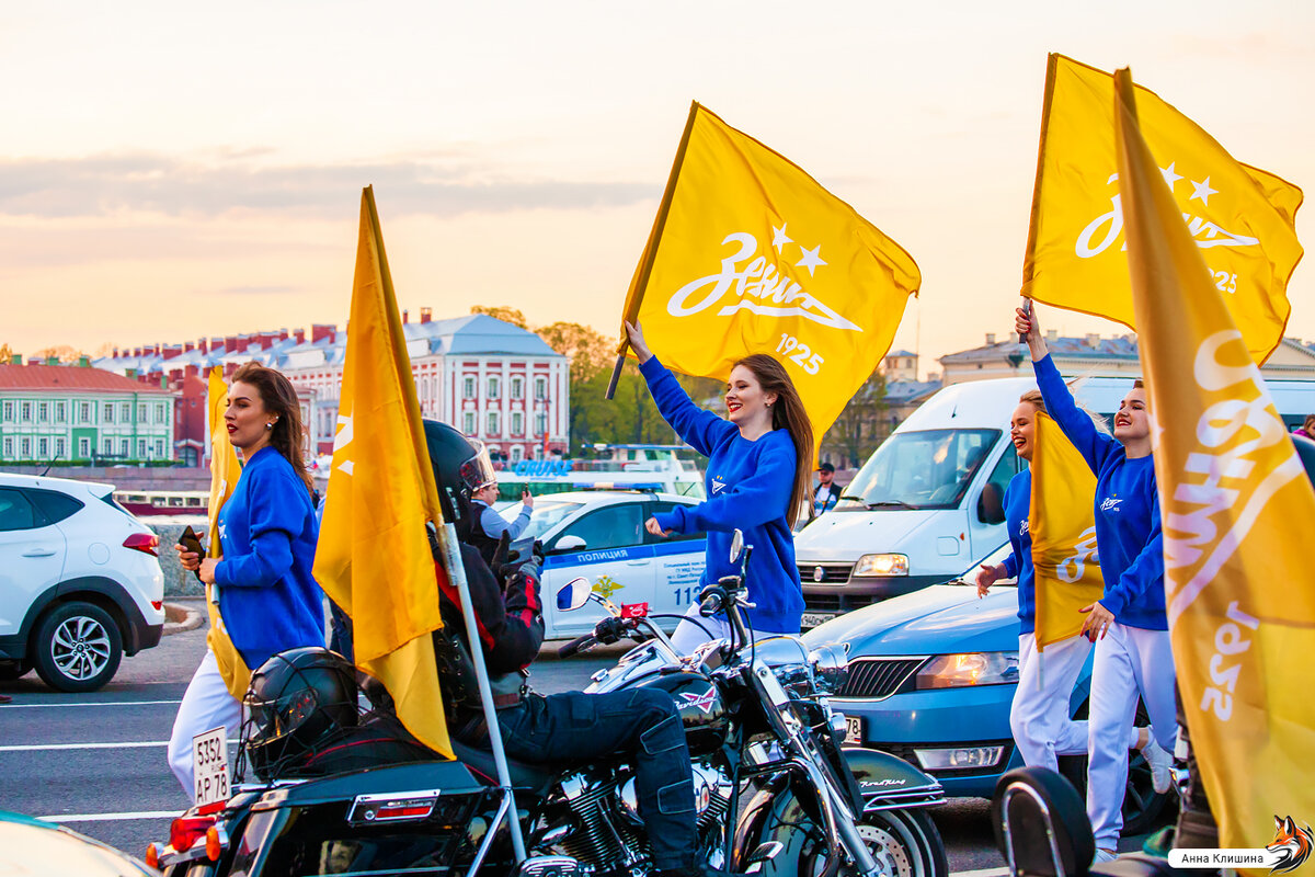 Красивые девушки с лучезарными улыбками из фан-клуба "Зенита" на чемпионском параде