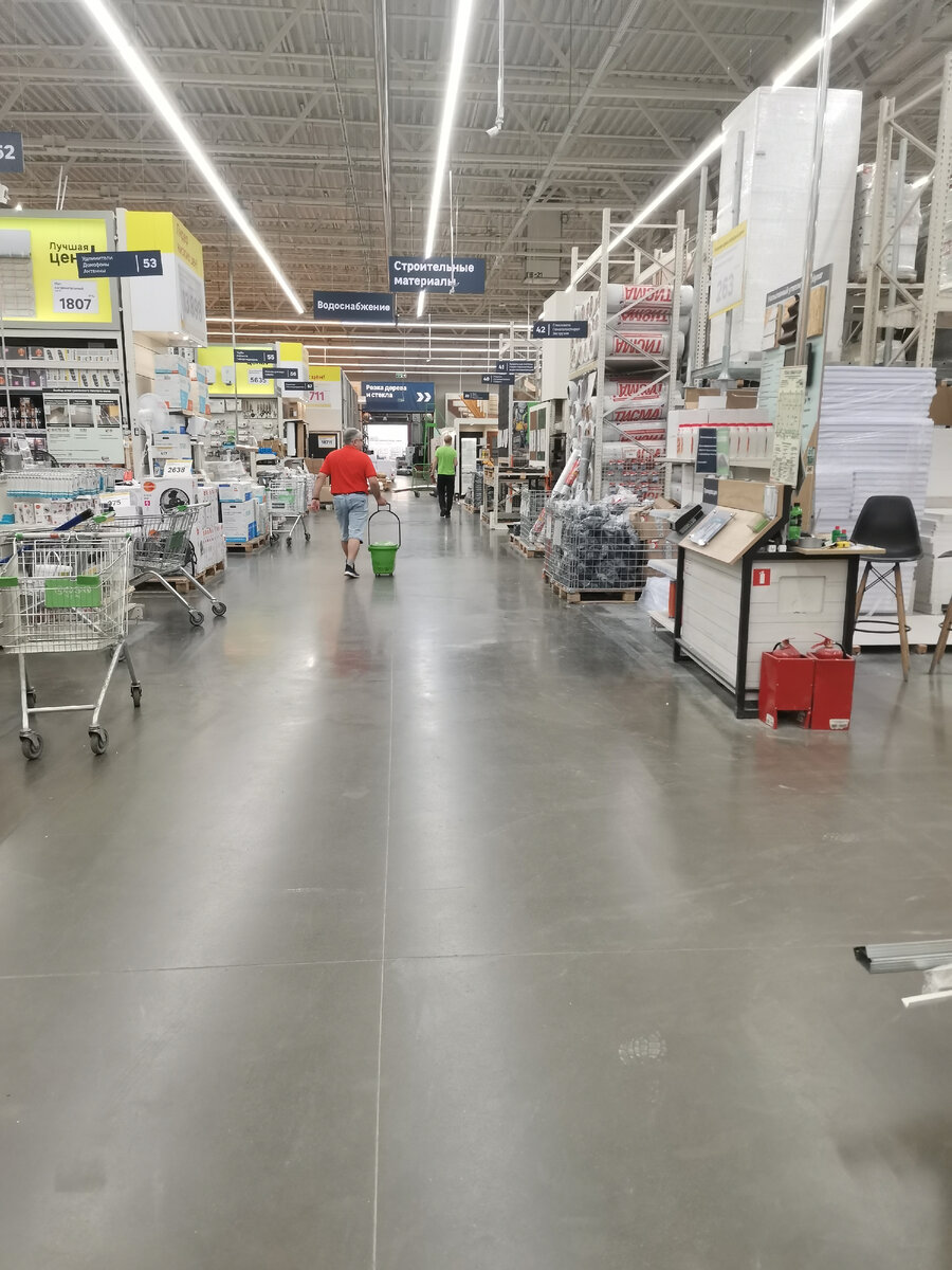 Мастера по лестницам на объекте и вернутся ещё минимум через неделю. Мастер, который должен был делать стены, потерялся, а вчера и вообще муж руку потянул и пока не будет заниматься никаким ремонтом. "Пора делать пол" - такая идея пришла мне в сегодняшней ночи, о чем я незамедлительно и сообщила мужу, проснувшись. У нас выбор небольшой. Нет, точнее, выбор то большой, но в средствах мы ограничены. Поэтому, выбрали самый бюджетный вариант покрытия пола. Не поверите - обоями! 😁 Вот и поехали вечером в Леруа, выбирать и покупать. К зиме, а лучше уже и к осени, хочу убрать все ковры с этажа и нормально мыть пол, по человечески))) Линолеум, даже б/ушный, на наши 80 квадратов пола купить будет проблематично, да и дорого это, ламинат и все остальное стелить смысла нет, так как планируем тёплый пол, а это вырвнивание, гидроизоляция и, собственно, сам тёплый пол, а потом уже финишное покрытие. А вот чем-то покрыть бетон, чтобы он не пылил и чтобы было красиво - это нужно. В ванной у меня се