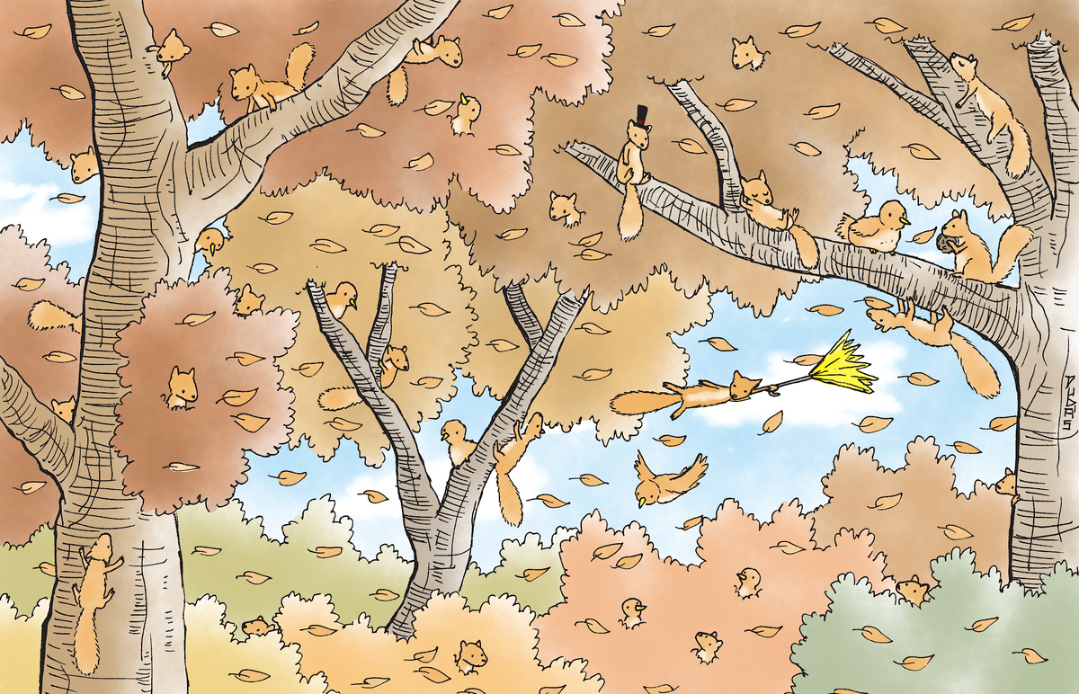 Знаешь ли ты, что для того, чтобы пережить зиму, одной белке нужно три тысячи орехов? Не удивительно, что они вечно суетятся, и даже художник изобразил зверьков в движении. Давай проверим, сможешь ли ты сосчитать их всех! Засеки время — уложиться надо в одну минуту. Сколько белок на картинке — 18, 20, 22, 24 или 26? Пиши в комментариях!