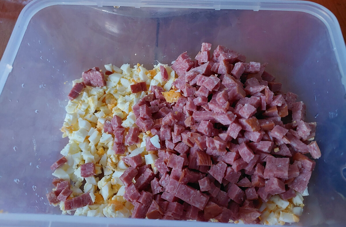 Бутерброды, как пицца😊 Пиццу можно готовить не только на тесте, но и на хлебе, батоне. Получается очень вкусно и быстро. Время приготовления 20-25 минут. Ингредиенты могут быть на любой вкус. Продукты: Батон (можно хлеб белый или чёрный, кому что нравится) Колбаса (докторская или копченая)-150 гр. Свежий помидор- 1-2 шт. Болгарский перец-1шт. Вареные яйца-4 шт. Огурцы-свежие средних размеров-2 шт., солёные-3 шт. Консервированный горошек или кукуруза (кому, что нравится)-1 банка Твёрдый сыр-100-150 гр. Майонез-1 ст. ложка Подготовьте все ингредиенты. Они могут меняться в зависимости, кто какие продукты любит, предпочитает. Включите духовку для предварительного разогрева на 200 градусов. Яйца очистить от скорлупы и нарезать небольшими кубиками. Колбасу очистить от кожуры и также порезать кубиками. Солёные огурцы, также нарезать кубиками и высыпать в тарелку к яйцам и колбасе. Такое же действие проделать со свежим помидором и болгарским перцем. Предварительно их конечно же помыть, перец