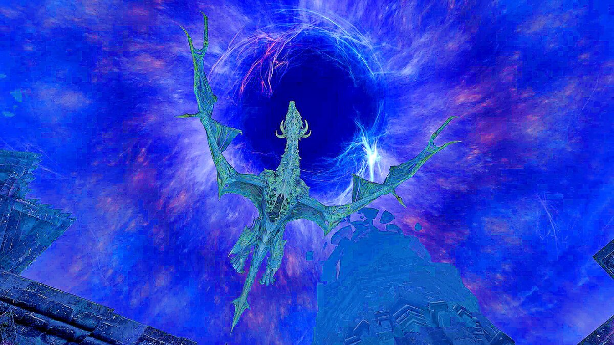 (Часть 1 - ЗДЕСЬ!) (Часть 2 - Могильник) Главный сюжет DLC Dawnguard Валерика готова отдать им Древний Свиток – но есть ещё одна крупная проблема – дракон: Предупредив о Страже, вампирша отправилась к массивным дверям Могильника. Стоило им только перешагнуть через порог, как раздался рёв, и появился он – Дюрневир. Дракон Каирна Душ был нежитью – скелет, обтянутый гниющим мясом, с торчащими рёбрами и полуистлевшими перепонками крыльев. Он взгромоздился на крышу одной из башенок Могильника и тут же появились костяные люди, напавшие на них. Троица вампиров ринулась в бой… Довакин орудовал мечом и кинжалом, а мамаша с дочуркой активно применяли магию, но и кинжалы тоже иногда мелькали у них в руках. Дюрневир плюхнулся сверху в гущу схватки. Обрадованный Дова хотел блеснуть перед девчонками своим мастерством, но куда там: обе вампирши с радостными криками бросились на дракона, обогнав профессионального драконоборца на полпути… Дракон понял, что с ними лучше не связываться и свалил об