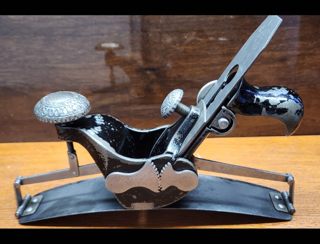 Гибкая стальная подошва регулируется поворотом большого переднего винта. Обе половины подошвы перемещаются одновременно благодаря боковому зубчатому механизму. Тип винта с накатанной головкой в ранних вариантах № 113 использовались регулировка крышки и бокового колеса. Компания Stanley Rule and Level была приобретена гигантским заводом Stanley works в 1920 году и стала известна как завод Stanley Rule and level.Oнo было официально переименовано в 1935 году и стало подразделением Stanley Tools компании Stanley Works.B 1920 roдy Stanley Works of New Britain, Конн. была крупной производственной корпорацией. продукция которой варьировалась от строительного метизного оборудования до объемной стали.Она была основана в 1852 году Фредериком Стэнли, который был дальним кузеном Генри Стэнли, первого президента компании Stanley Rule and Level. Эти две великие фирмы Стэнли.по сути.объединились и продолжали свою деятельность таким же образом, как и до слияния. Основная дата патента - 25 се