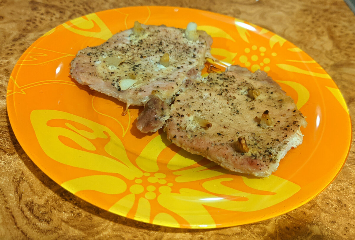 Очень простое в приготовлении блюдо. Лучше всего подходит для обеда, но, если очень хочется , можно и на ужин😉 Вам понадобится: Свинина - примерно 0.5 кг Чеснок - 4 зубчика Горчица - по вкусу, у меня на такую порцию уходит 3 чайные ложки Соль и перец - по вкусу Свинину режем на куски толщиной примерно 1-1.5 см. Отрезаем лишний жир. Зубчики чеснока режем каждый на несколько частей. Форму для запекания застилает фольгой, в нее выкладываем свинину. Смазываем горчицей, посыпаем солью и перцем. Сверху форму также накрываем фольгой. Так мясо хорошо пропечется и не будет сухим. Ставим в духовку на 180 градусов и запекаем 20-25 минут, до мягкости мяса. Затем убираем фольгу и запекаем в открытом виде ещё 10 мин, чтобы образовалась корочка. Приятного аппетита 🍲 На гарнир к такому мясу хорошо подойдёт гречка с морковью и соевым соусом. Понравился рецепт? Ставьте лайк 👍и подписывайтесь на мой канал