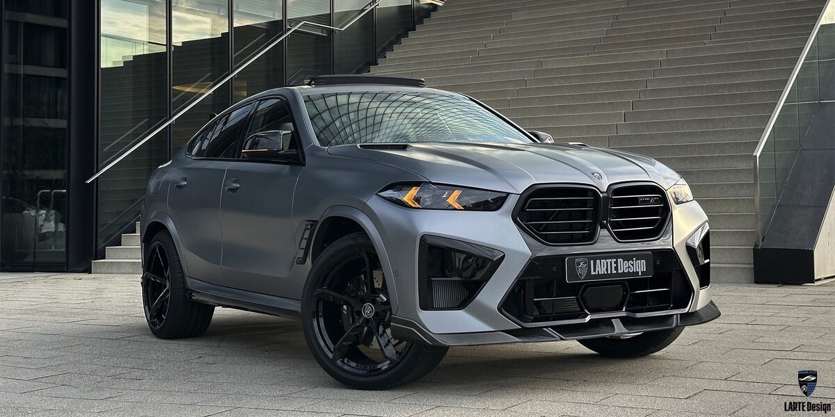 В мире роскошных внедорожников BMW X6M всегда был символом мощности, производительности и спортивности. Тем не менее, для тех, кто хочет вывести свой X6M на новый уровень визуальной привлекательности, обвес Larte Performance Body Kit предлагает ещё более агрессивный дизайн. Тюнинговая компания Larte, с помощью комплекта Performance Body Kit для BMW X6M Competition Facelift 2023 года, вывела персонализацию на новый уровень. Аэродинамический обвес из углеродного волокна Аэродинамический обвес включает капот, спортивный диффузор и агрессивную переднюю губу. Использование углеродного волокна направлено на повышение производительности кроссовера за счёт снижения веса и увеличения прочности. Также есть выбор материалов и отделки. Независимо от того, предпочитаете ли вы гладкость матового покрытия или очарование глянцевого, Larte предлагает варианты из 100% углеродного волокна, а также композитные материалы премиум-класса, окрашенные в цвет кузова вашего X6M. Трёхкомпонентный передний сплитте