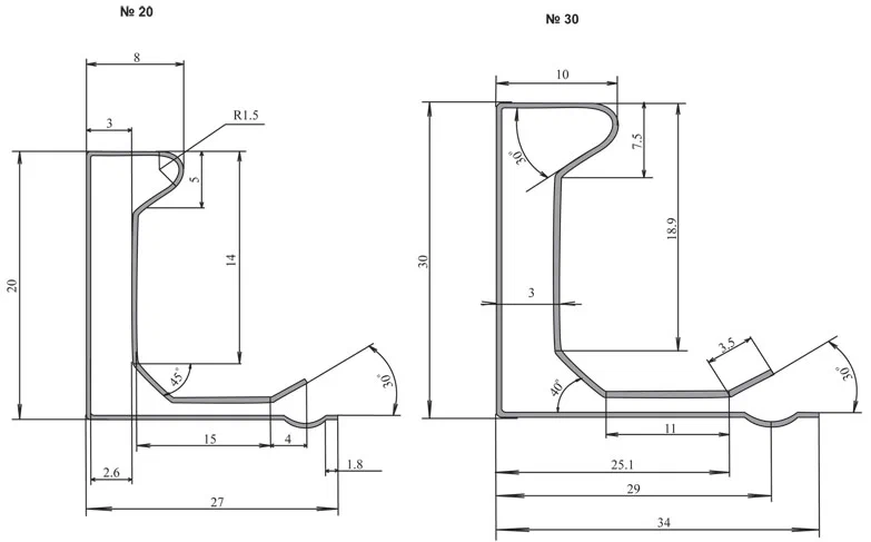 Уголки аналогично 2 вида, для шины 20 УГФ-1 и для шины 30 УГФ-2