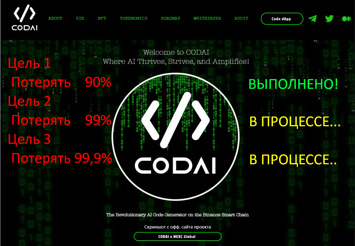 Я не Вага, не ясновидящий и никакой инсайдерской информацией я не обладал - просто метод анализа DAWR работает! Это я к тому что 10 августа я написал пост DAWR: Warning! Danger!| CODAI (CODAI), в котором изложил ближайшее будущее токена - сегодня оно подтвердилось! Буду благодарен за лайки и комментарии❤️ Данный контент не является финансовой рекомендацией. Все события и персонажи вымышлены. Любое сходство с реальными событиями случайно. Проводите собственный анализ и принимайте самостоятельные решения. 10 августа я поводил свои исследования и наткнулся на листинг токена CodAI (CODAI), который проходил на бирже MEXC. Там 98% токенов подобного толка листится, забирают ликвидность у хомячков и исчезают. Но токен CODAI привлек мое внимание своей "наглостью" - настолько переоцененных альтов я очень мало видел и такой токен стал бы очень показательным примером того, что анализ DAWR обладает огромнейшим потенциалом, основная задача которого уберечь людей от покупки переоцененных активов, ка