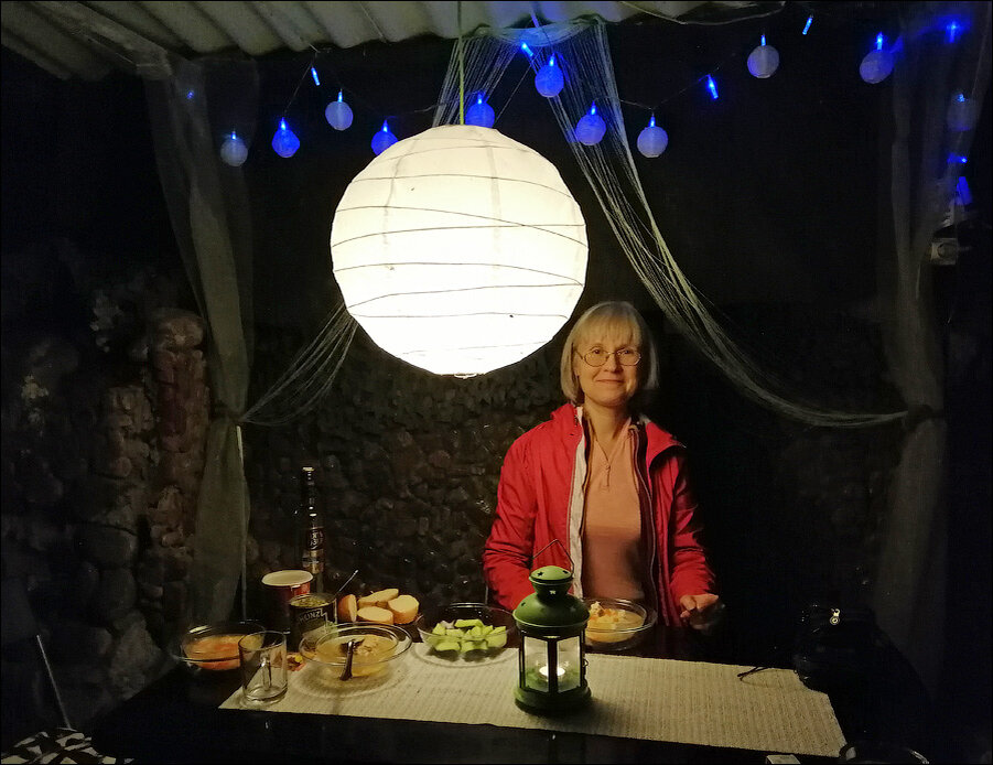 И Лена, помня о рукавах термушки под жарким солнышком, не забыла зайти в аптеку за солнцезащитным кремом… А после похода по магазинам луна провожала нас к нашей металлической калиточке в стене. И снова был чудесный ужин в беседочке на улице. И мы принялись готовиться к завтрашнему походу, мечтая о новом путешествии и строя планы…
