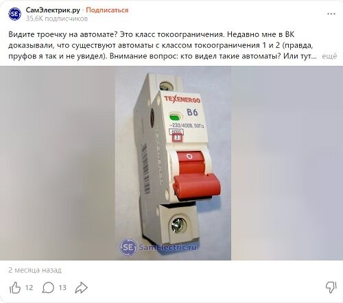 Автор дезинформирует читателей, заявляя «Видите троечку на автомате? Это класс токоограничения». «Класс токоограничения» выдумали некомпетентные лица, которые не знают требования к автоматическим выключателям. Они активно распространяют эту дезинформацию в Интернете.