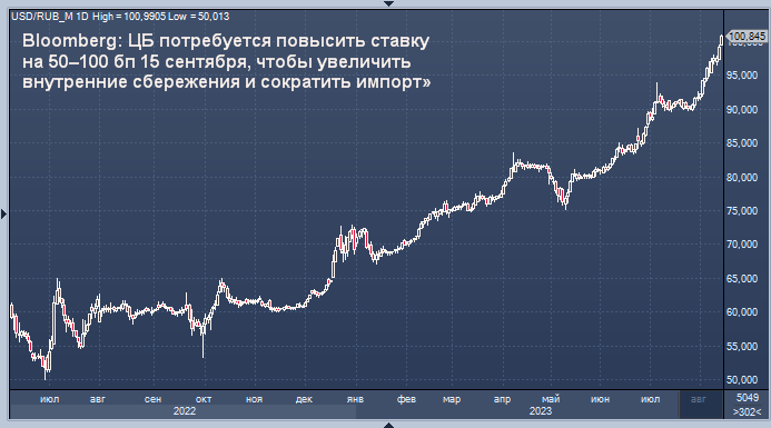 Что говорит Bloomberg Economics...«Для стабилизации рубля, по нашим оценкам, директивная процентная ставка должна подняться ближе к 10%, а расходы федерального бюджета должны оставаться в пределах бюджетного потолка. Рубль может выиграть от более высоких цен на сырую нефть, но внутренняя денежно-кредитная политика останется более надежным якорем для валюты. Банку России потребуется повысить учетную ставку на 50–100 базисных пунктов на заседании 15 сентября, чтобы увеличить внутренние сбережения и сократить импорт».— Александр Исаков, экономист по России.
