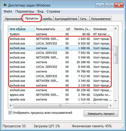 Почему процесс svchost.exe может повышенно нагружать процессор?