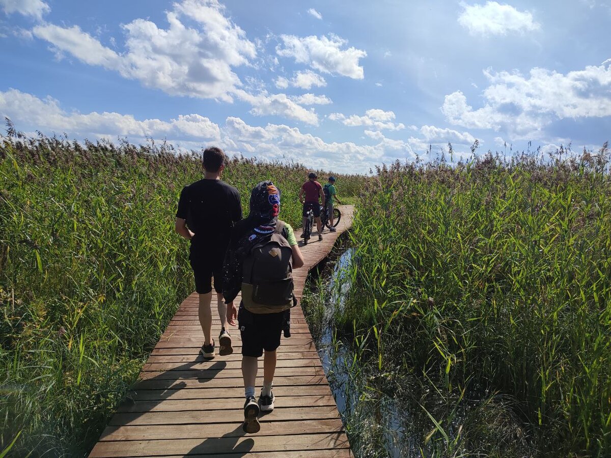 Протяженность маршрута — пять с половиной километров, экотропа закольцована, то есть вы вернётесь к тому же месту откуда пришли. Часть пути — грунтовая дорога, часть составляют деревянные настилы. Также есть участки со ступенями, поэтому с коляской здесь может быть неудобно.