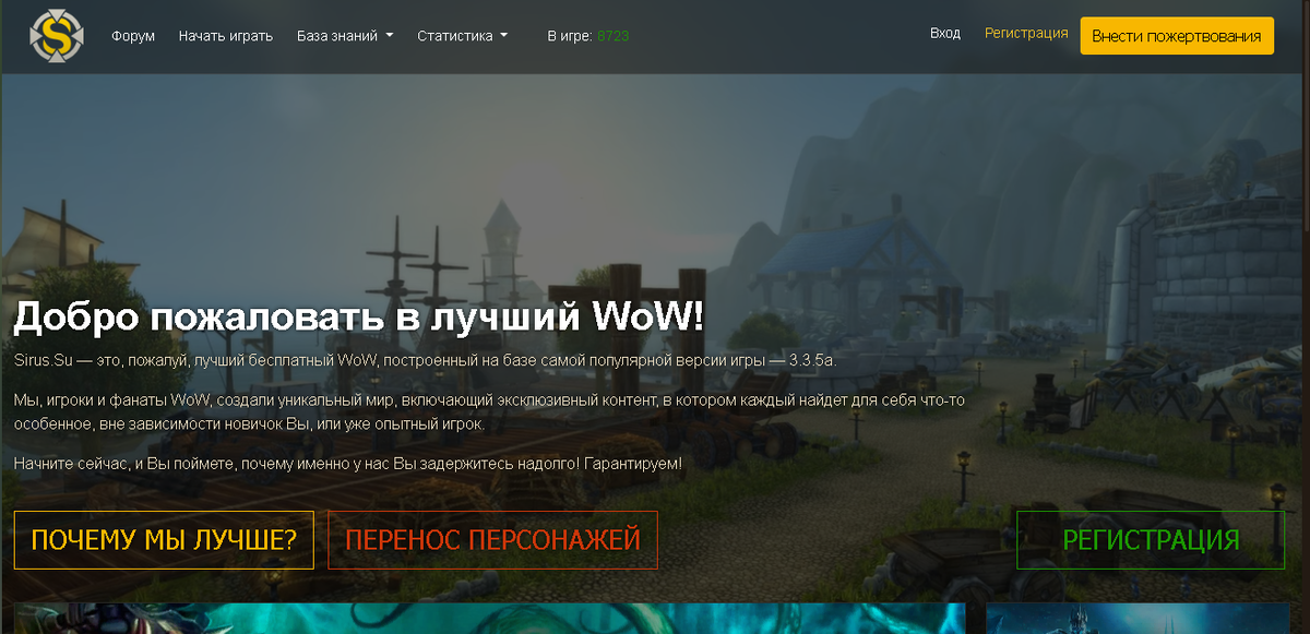 Всем привет. Меня зовут Сергей. Хочу вместе с Вами начать играть в игру WoW Sirus с первого и до восьмидесятого лвл, а именно что делать, как играть, как подымать свой уровень и т.д. Почему я выбрал именно этот сервер «WoW Surus», потому что во-первых он бесплатный ( и это было самое главное для меня), во-вторых стабильный онлайн. Играть буду на реалме Х5( И самое главное что играть буду без усилок на опыт и без убыстренной прокачки). Вы наверно спросите зачем тебе это если за пару дней можно получить 80лвл и не париться, скажу просто хочу просто поиграть, по выполнять квесты. И так начнем. Для начала заходим на сайт с игрой Sirus.su и регистрируемся. Тут все очень просто нажимаем кнопку РЕГИСТРАЦИЯ дальше ИГРАТЬ БЕСПЛАТНО листаем вниз, и заполняем поля(аккаунт, пароль, электронная почта) и нажимаем СОЗДАТЬ АККАУНТ После чего высвечивается И если у Вас еще нет клиента игры,то скачиваем его и обновляем до последней версии. После этого нажимаем на кнопку личный кабинет, вводим логин и па