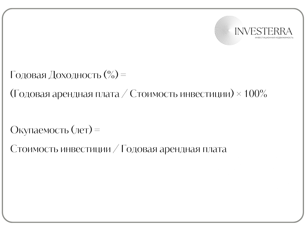 Главным вопросом при покупке коммерческого помещения под аренду является его экономика. В объявлениях по продаже она описана двумя основными показателями: окупаемость и доходность. Эти показатели, как правило, указаны без учета многих факторов. А значит, вы видите «грязные» значения пригодные только для первичного анализа. Однако, приобретая объект с целью получения дивидендного дохода, необходимо видеть «чистые» значения, которые можно сравнить с альтернативным видом инвестиций (к примеру, банковским депозитом или объектом жилой недвижимости за рубежом), и на основании которых можно принять решение о покупке. В среднем, помещения в России торгуются с окупаемостью от 8 до 12 лет (в зависимости от региона и объекта), поэтому для удобства вы можете иметь в виду следующую таблицу: В этой статье мы рассмотрим, какие факторы нужно дополнительно учесть, чтобы рассчитать реальную доходность и окупаемость объекта. Подоходный налог: В зависимости от выбранной системы налогообложения, рассчитай
