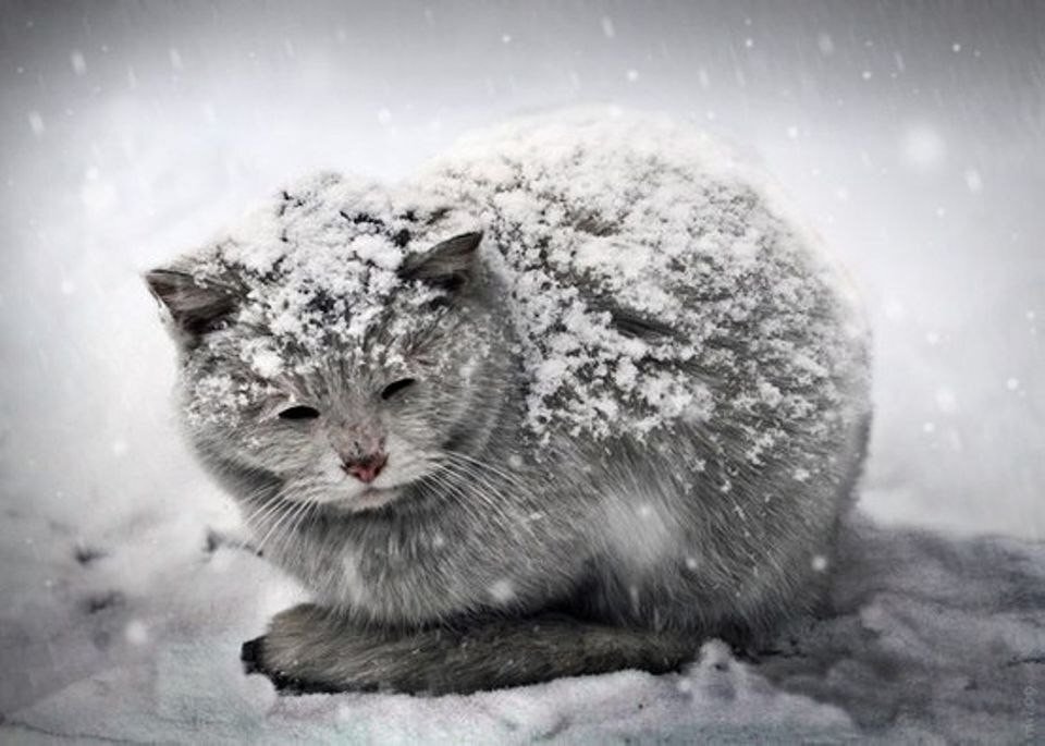 Когда он шёл обратно, недалеко от остановки трамвая увидел занесённого снегом кота. Тот был рыжим, но теперь казался белым с жёлтыми вкраплениями.