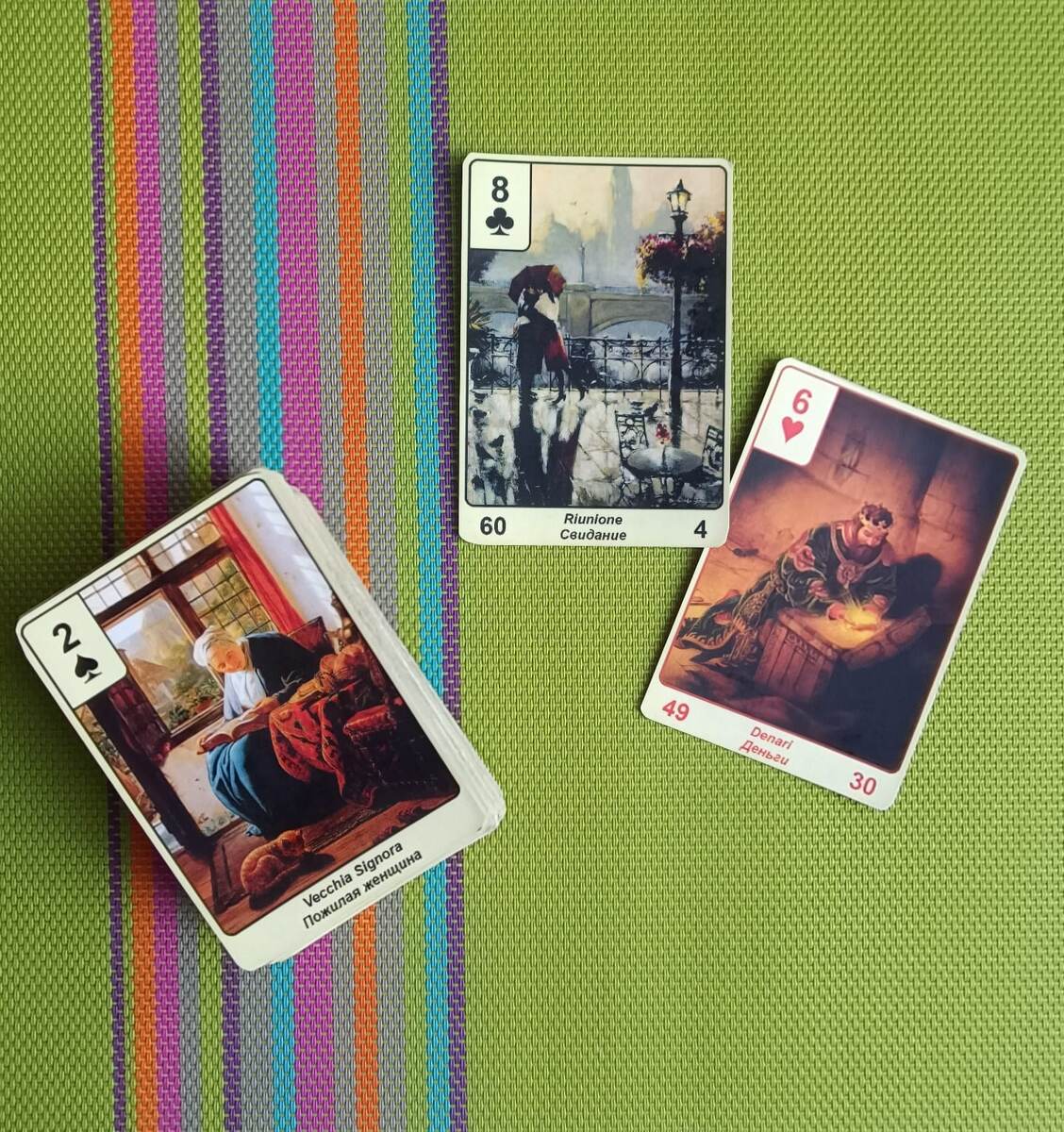 Дамы, я рекомендую посмотреть карту дня для мужчин… Вы идёте рука об руку в энергиях)). «И на старуху бывает проруха» как показывает дно колоды, сидит дама, в целом всё понимает про эту жизнь, но не тут-то было. Появляется человек и трясёт деньгами или предложением про деньги, тут мало кто устоит. Карта дня «Свидание», напрашивается предсказать вам встречу, свидание, допускаем. Приятная прогулка за его счёт, хорошо. Заказывайте всё самое дорогое, не упускайте случай. Если романтика вам чужда в этот день, тогда вы можете оплатить чью-то встречу, за ваш счёт банкет… Интересное кино.