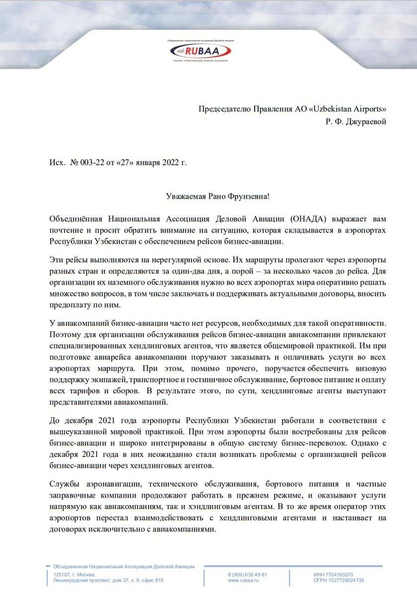 Проблема была таких масштабов, что в ассоциации бизнес-перевозчиков России, куда на тот момент (2020-2021) входило множество западных компаний, вопрос полётов в Узбекистан был вынесен на одно из заседаний, по итогам которого отправлено письмо-обращение.