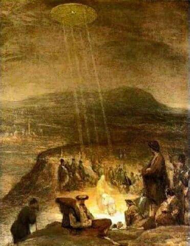 ТАИНСТВЕННЫЙ ОБЪЕКТ НА КАРТИНЕ 18-ГО ВЕКА «Вознесение Христа», картина 1710 г. некий свет посылает 4 луча для вознесения Иисуса. Картина написана голландским художником Арентом де Гелдером и находится в Кембридже. Дискообразный объект светит лучами на Иоанна Крестителя и Иисуса Христа. Де Гелдер был учеником Рембранта и имел доступ к документам и архивам Ватикана. Именно поэтому некоторые исследователи считают, что своей картиной он хотел передать некое тайное знание.