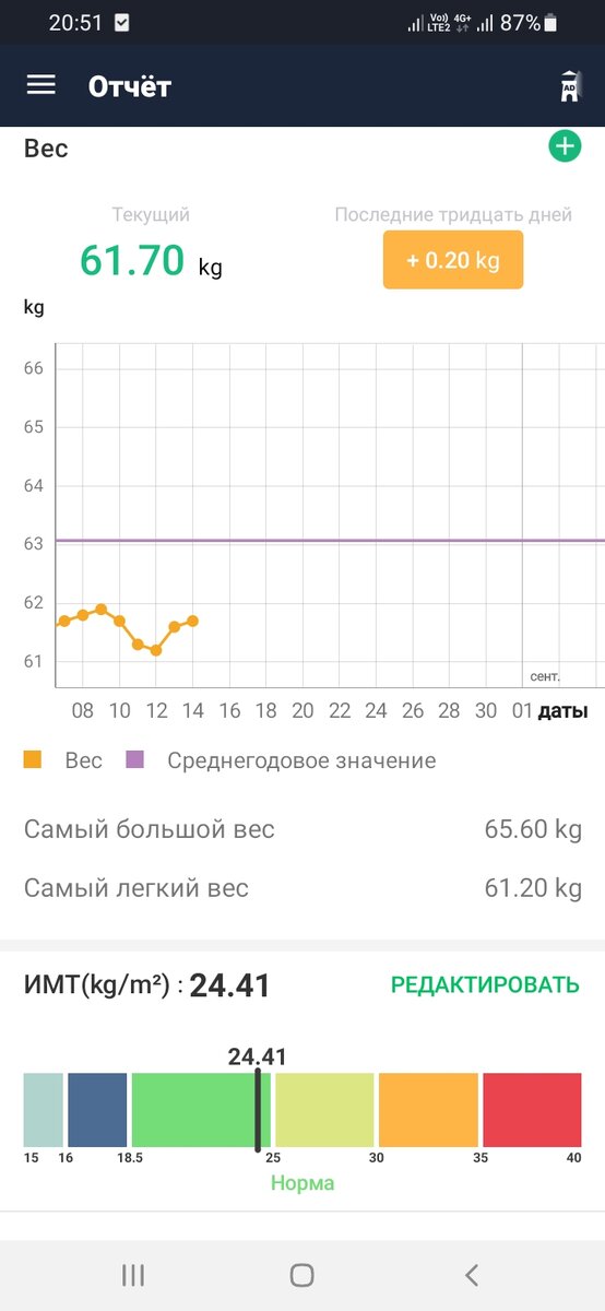 Подвожу итоги последней недели. С чего начали, к тому и пришли. Всю неделю я старалась правильно питаться, ходила пешком на работу и обратно, порции были небольшие, а благодаря жаре аппетита вообще не было. На графике этот период сопровождается стабильным снижением веса. В выходные были пончики, пирожки, пицца и пиво - они свели на нет все мои недельные заслуги. Радует одно - если бы я в течение недели не соблюдала режим, то сейчас бы у меня был хороший плюс веса. На этой неделе ставлю перед собой задачу - не нарушать пищевой режим, медитировать, стараться меньше расстраиваться. Как ваши успехи?