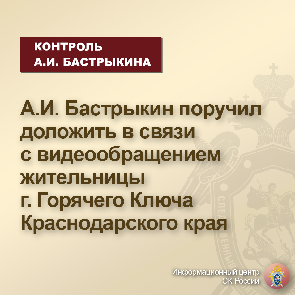 Председатель Следственного комитета Российской Федерации Александр Иванович Бастрыкин поручил руководителю СУ СК России по Краснодарскому краю Андрею Константиновичу Маслову представить доклад о ситуации с расследованием уголовного дела в