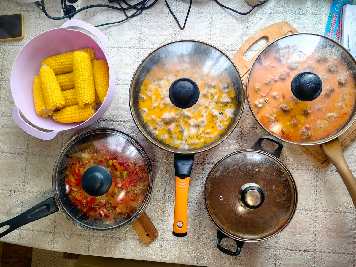 Привет. Появилось желание возобновить рубрику "Меню недели", где ранее я показывала, что готовила на выходных на всю неделю вперед. Планировать меню я очень люблю. Есть что-то завораживающее в выборе блюд, составлении списка продуктов. И после уже воплощать все идеи на кухне. Тут я не буду писать подробные рецепты. Они или есть или скоро будут на канале. Подписывайтесь на канал, чтобы не пропустить: Начну по порядку. Кукуруза Каждый год в конце лета у меня есть одно желание - наесться вареной кукурузы так, чтобы смотреть на нее было невозможно. В общем желание я свое выполнила в этом году. Кукурузу я варю без всяких премудростей. Просто заливаю водой, и варю примерно 30 минут. И потом посыпать солью, ммм... Рыба с овощами Если честно, не помню, что за рыба. Если не ошибаюсь, то минтай. Да это и не так важно, для этого блюда подойдет любая рыба. Овощи потушить. В отдельной сковороде обжарить рыбу, выложить сверху овощи и довести до готовности. Курица в сливочном соусе Простое вкусно