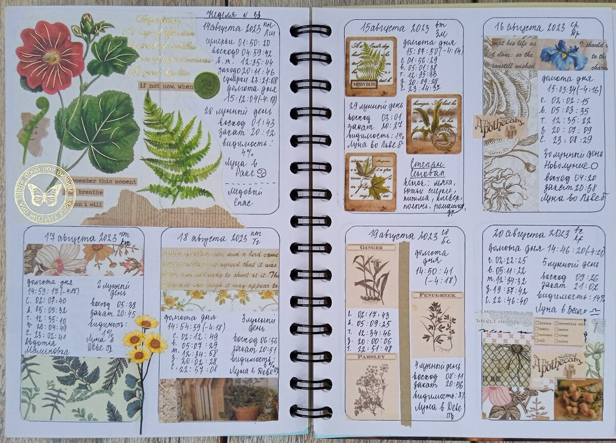 Привет! Мои мини-коллажи за прошлую неделю: Растения-растения-растения... *** 14 августа 2023 (Лш) - Медовый Спас Когда писала про донник, вспомнила про донниковый мёд. Мой любимый мёд - каштановый, он не кристаллизуется, коричневого цвета, с горчинкой. Продавцы на ярмарке, помню, говорили, что он "мужской". Цветение каштана снимала весной. Муж Драконыч лежал в больнице, я его навещала, а там - такая красота: *** 15 августа 2023 (Зм) - Степан-сеновал Интересно: В этот день всей семьей шли в поле, собирали травы, чтобы сплести «Степанов венок». Для его изготовления брали двенадцать трав: божьи слезки, клевер, мята, пижма, полынь, ромашка и другие. Еще такой венок называли - «солнце с маревами». Его приносили домой, и вешали в красный угол под иконы. Верили, что он обладает исцеляющей и защитной силой, помогает защитить домочадцев от простудных заболеваний в холодное время года. Если в дом приходила беда или болезнь, хозяйка от венка отрывала травы и заваривала их. Считалось, что си