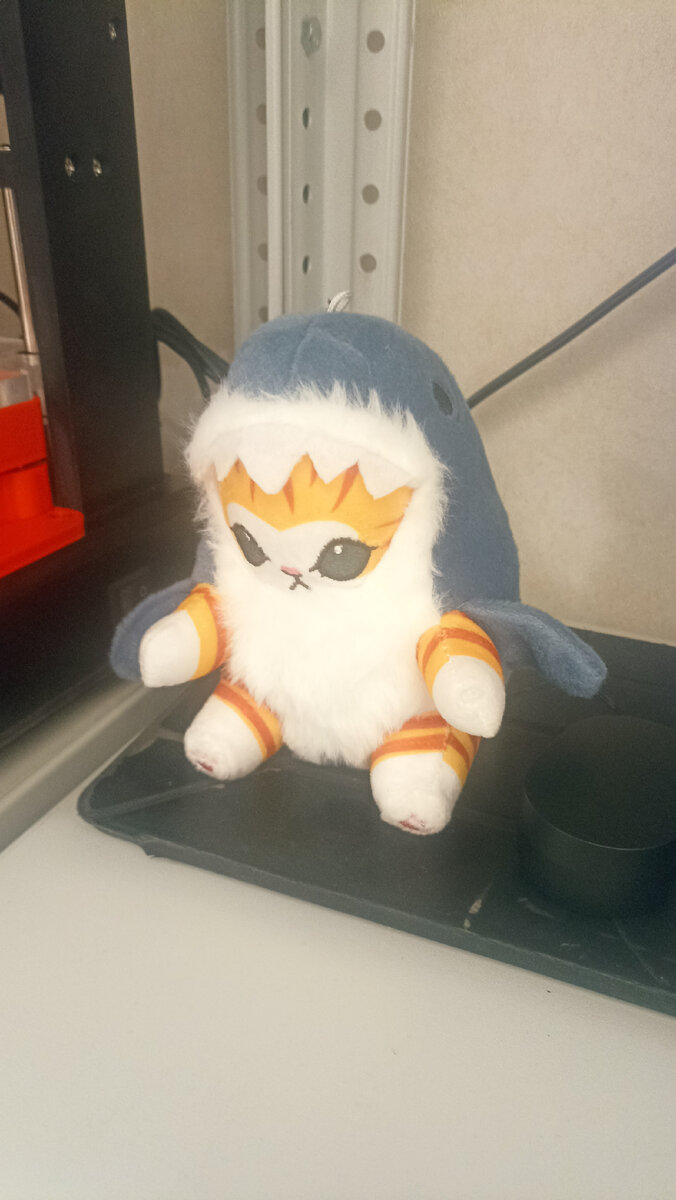 Наткнулся на очень миленькую мягкую игрушку, которую на али кличат как Акула кошка жареная креветка. С акулой кошкой все понятно, но почему жареная, да еще и креветка остается загадкой. Есть мнение, что это связано раскраской. Однако мимо такой прелести было невозможно пройти. И теперь он творит всякую всячину. Вот, помогал разобрать старый 3д принтер. Еще он любит читать и играть в прядки :) И это еще не все.