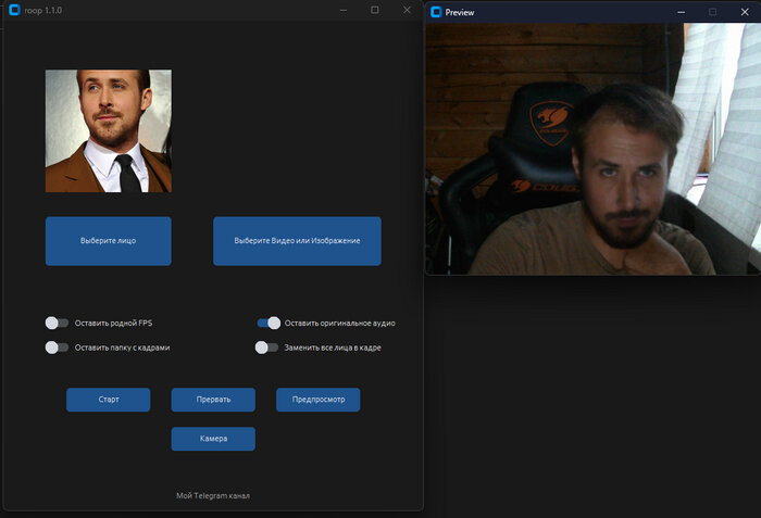 Deepfake меняющий лицо на видео с вебкамеры на лету. Работает на Nvidia, Intel и AMD