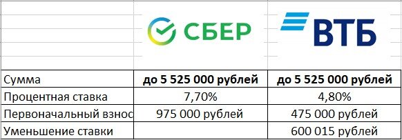 Добрый день! А мне ВТБ одобрил еще одну ипотеку, теперь у меня одна действующая в Сбере одна одобренная в Сбере и еще одна одобренная в ВТБ Для удобства сделала красивую табличку по одобренным, но не оформленным ипотекам: В ВТБ акция по первоначальному взносу до 31 августа, где первоначальный взнос всего 10%. Это даст возможность уменьшить процентную ставку по максимуму, т.е до 4,8%. Кто мечтал об небольшом проценте по ипотеке? Вот он, он существует! В сбере же тоже можно уменьшить ставку, но на 2%, если воспользуемся услугой, то выглядеть будет уже вот так: Что имеем? В сбере ставка выше на 0,9%, но на 500 000 тысяч рублей больше первоначальный взнос, соответственно тело кредита будет меньше. В предоставленном расчете в Сбере мы можем купить недвижимость до 6,5млн, а в ВТБ до 6 млн. А что же выгоднее? Итак, это Сбер со стоимостью недвижимости 6,5 млн А вот ВТБ со стоимостью недвижимости, 6 млн ВТБ выглядит само собой привлекательнее, но ведь сумма то меньше. Для честности посчитаем