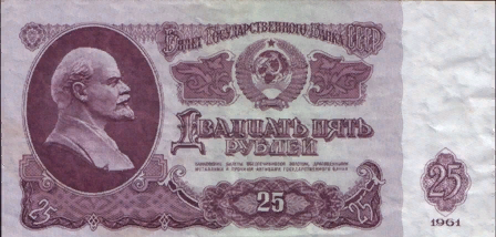 На фото: банкнота 25 рублей (по-простому, — четвертак) образца 1961 года. В те времена — очень большие деньги.