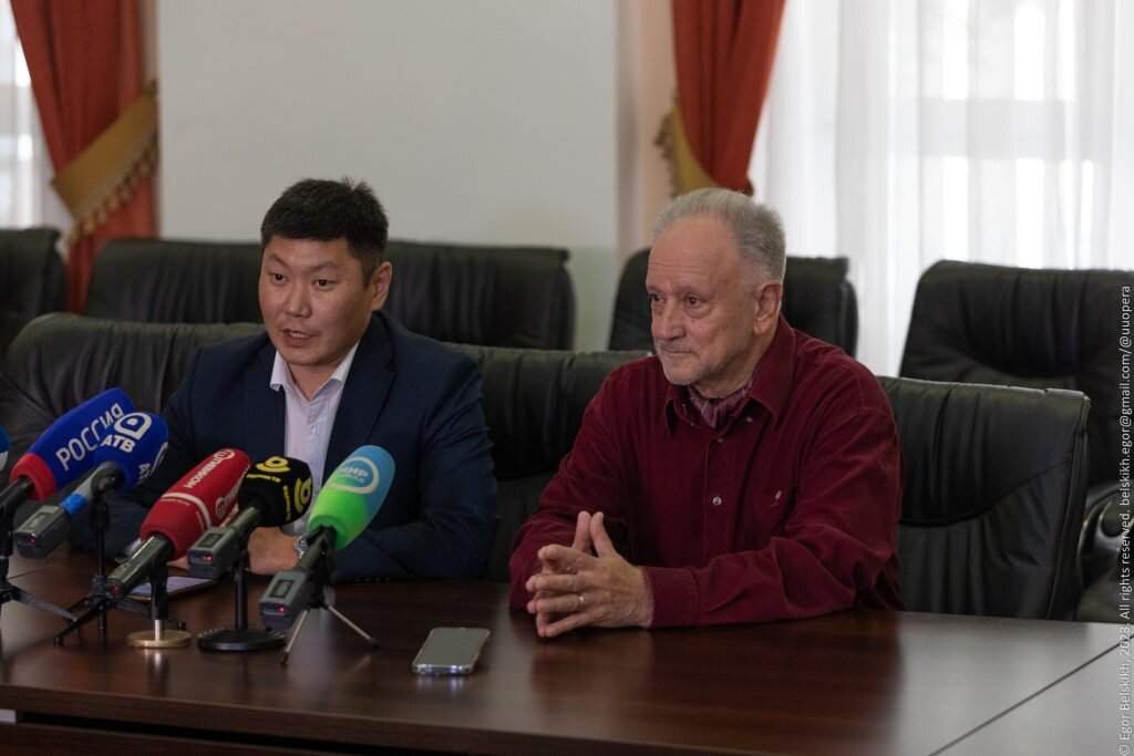 13 и 14 сентября состоится историческое событие в музыкальном мире – премьера спектакля Владимира Рылова по опере Вано Мурадели «Великая дружба». С этой постановки будет официально открыт 84-й театральный сезон в Бурятском государственном академическом театре оперы и балета. О предстоящей премьере на правительственном брифинге рассказали художественный руководитель театра, маэстро Владимир Рылов и заместитель министра культуры Бурятии Владимир Будацыренов, который от лица руководителя Соелмы Дагаевой поздравил всех театралов с этим знаменательным событием. «На плакате нашей оперы Вы можете прочесть: «Запретить нельзя исполнять!». Где мы ставим запятую? «Запретить, нельзя исполнять» — так решил Великий вождь народов Иосиф Сталин в 1948 году. Мы же пытаемся поставить так: «Запретить нельзя, исполнять!». Попробуем реабилитировать этот опыт. Материал сложный и неизвестный. Ведь с любой другой классической оперой певцы могут взять записи своих предшественников, великих исполнителей,