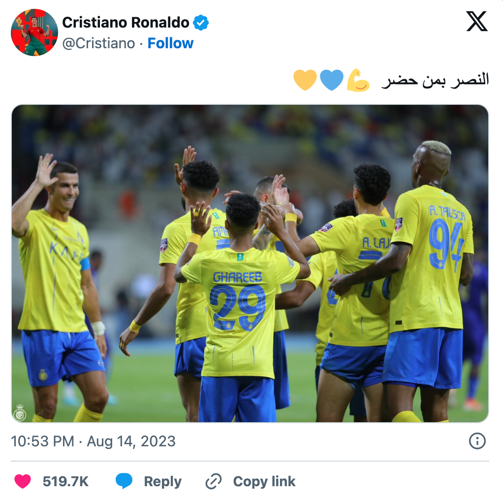 Ого, Роналду впервые написал пост на арабском. У Криштиану не лучшее время, что значат его слова?