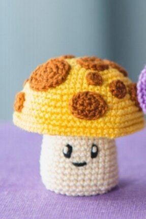 Материалы Шляпка гриба от солнца Желтая пряжа 1р. 6сбн в КА 2р. 6пр - 12 3р. (сбн, пр)*6 - 18 4р. (2сбн, пр)*6 - 24 5р. (3сбн, пр)*6 - 30 6р. (4сбн, пр)*6 - 36 7р. (5сбн, пр)*6 - 42 8р. (6сбн, пр)*6 - 48 9р. (7сбн, пр)*6 - 54 10р. 54сбн 11р. (8сбн, пр)*6 - 60 12р. 60сбн 13р. (9сбн, пр)*6 - 66 14-15р. 66сбн 16р. За переднюю петлю 66сбн 17р. (9сбн, уб)*6 - 60 18-й ряд вяжем за заднюю петлю 16 ряда 18р. (8сбн, уб, пропускаем петлю)*6 - 54 19р. За заднюю петли (7сбн, уб)*6 - 48 20р. За заднюю петлю (6сбн, уб)*6 - 42 21р. За заднюю петлю (5сбн, уб)*6 - 36 Меняем на молочно-белую 22р. За заднюю петлю (4сбн, уб)*6 - 30 23 ряд вяжем за передние петли 21 и 22 ряда. В 21 ряду нужно пропускать по одной петле. 23р. За переднюю петлю 30сбн 24р. 6сбн, пр, 7сбн, пр, 6сбн, пр, 7сбн пр - 34 25-33р. 34сбн 34р. За переднюю петлю 6сбн, уб, 7сбн, уб, 6сбн, уб, 7сбн уб - 30 35 ряд вяжем за задние петли 34 ряда 35р. 30сбн 36р. (3сбн, уб)*6 - 24 37р. (2сбн, уб)*6 - 18 38р. (сбн, уб)*6 - 12 39р. 6уб - 6 Стяни