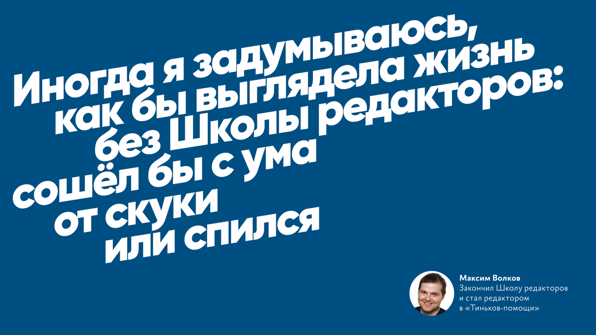 «Иногда я задумываюсь, как бы выглядела жизнь без Школы редакторов: сошёл бы с ума от скуки», — Максим Волков, редактор в «Тиньков‑помощи»